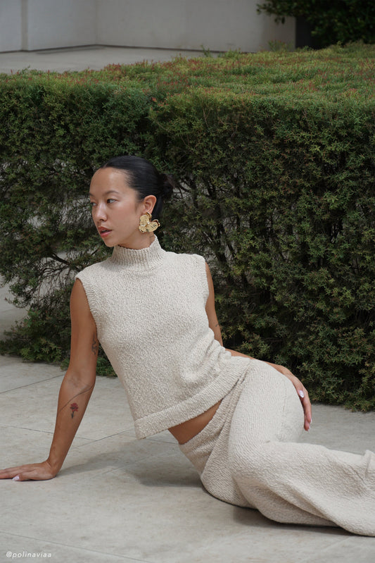 30% İndirimROF Açelya Kolsuz Triko Üst - Buğday