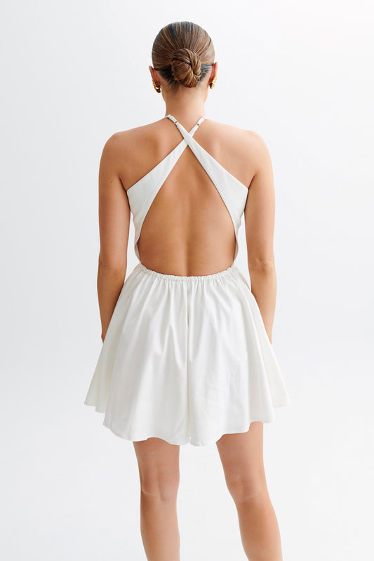 ROF Carolina Pamuk Boyundan Bağlamalı Mini Elbise - Beyaz