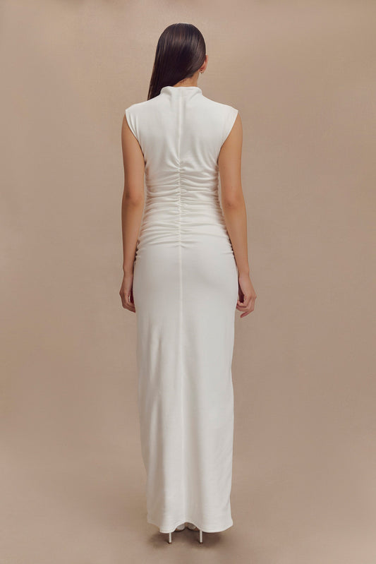 ROF Elliot Yüksek Yaka Kolsuz Maxi Elbise - Beyaz