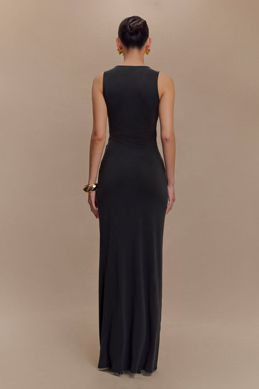 ROF Kirsty Strappy Yuvarlak Kesim Uzun Elbise - Siyah