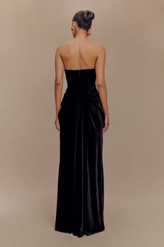 28% İndirimROF Paige Straplez Kadife Uzun Elbise - Siyah