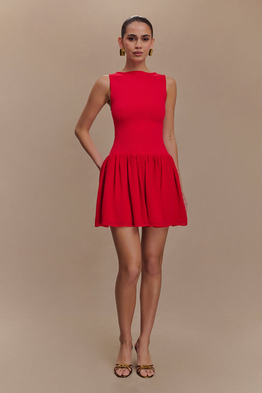 27% İndirimROF Ashleigh Triko Şifon Mini Elbise - Kırmızı