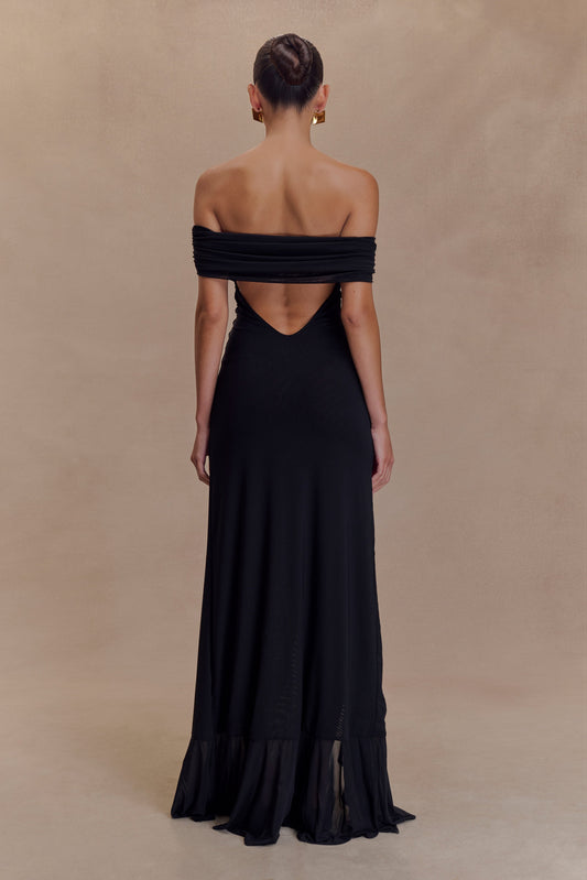 32% İndirimROF Audrey Düşük Omuzlu File Uzun Elbise - Siyah