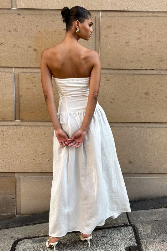 20% İndirimROF Audrina Straplez Keten Uzun Elbise - Beyaz