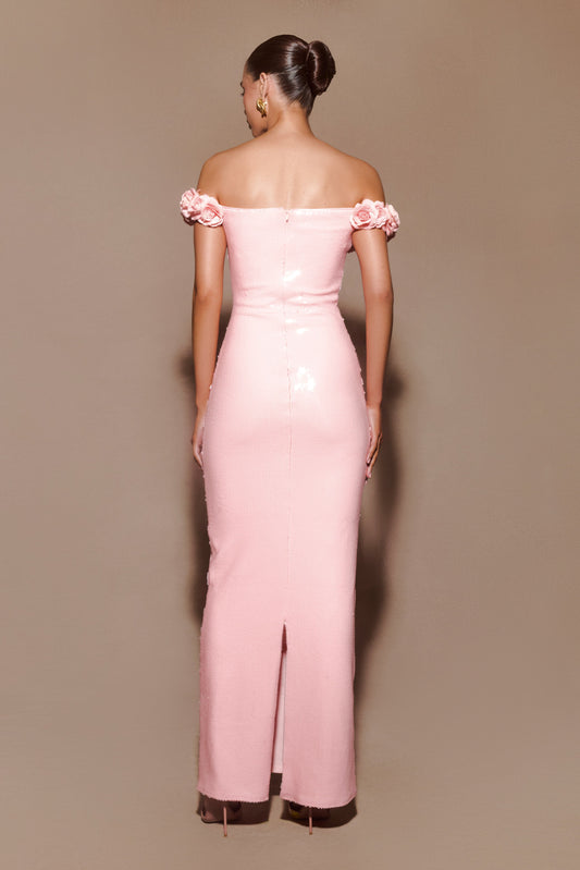 28% İndirimROF Carrie Pullu Gül Uzun Elbise - Soluk Pembe