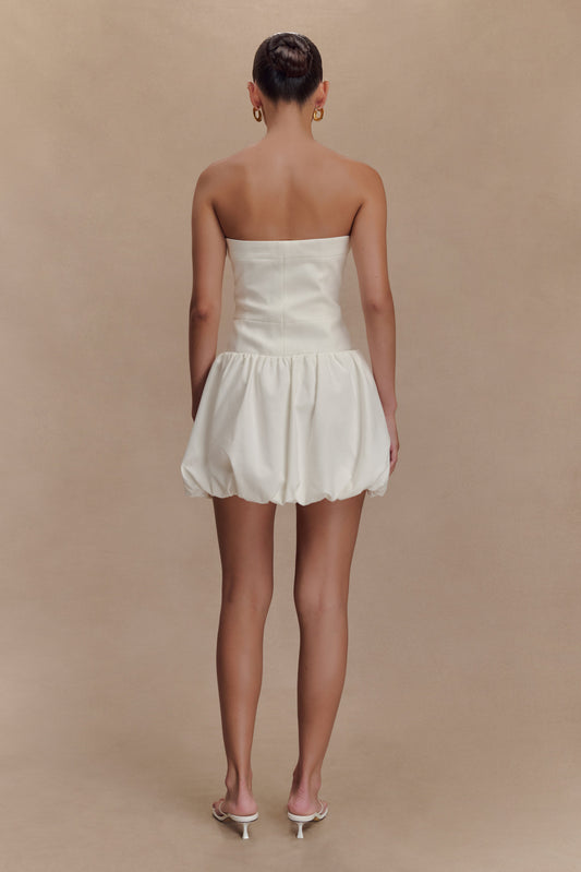 ROF Clementina Straplez Baloncuklu Mini Elbise - Beyaz
