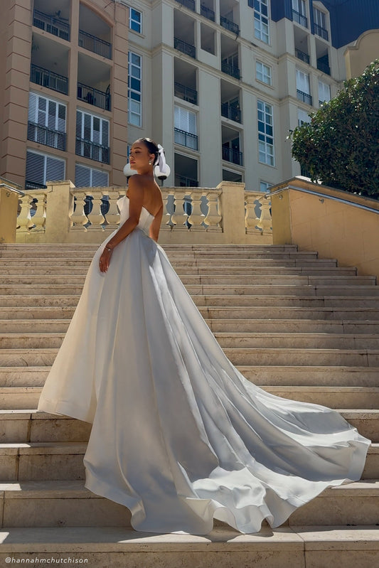 ROF Cyrill Straplez Saten Yapılı Uzun Elbise - Beyaz