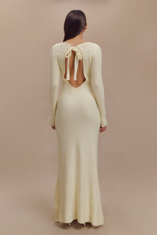 ROF Emily Uzun Kollu Örgü Maxi Elbise - Fildişi Marle