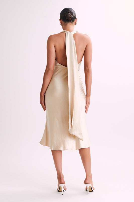 17% İndirimROF Terri Saten Cowl Midi Elbise - Tereyağı