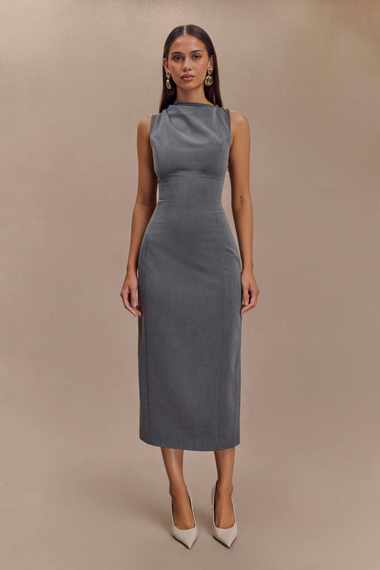 ROF Taylor Drapeli Krep Midi Elbise - Kömür Marle