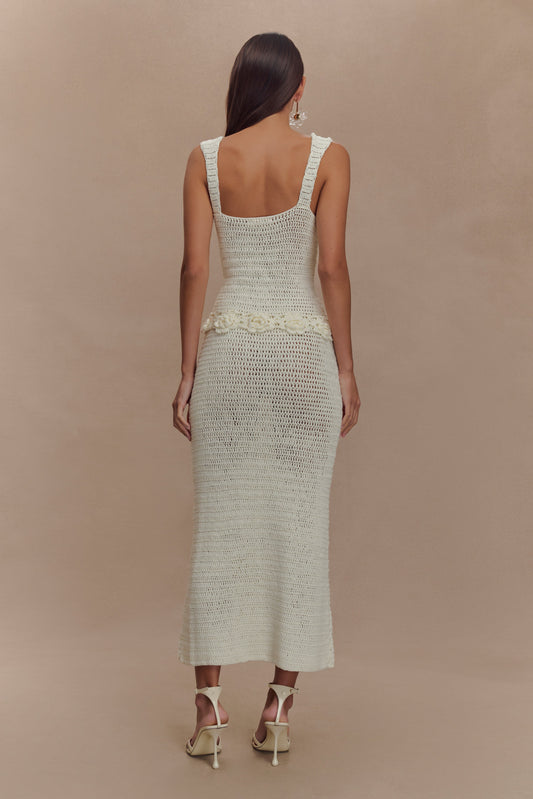 ROF Teagan Çiçekli El Tığ İşi Midi Elbise - Fildişi
