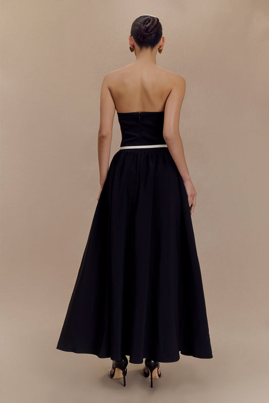 ROF Penny Straplez Kontrast Midi Elbise - Siyah Beyaz