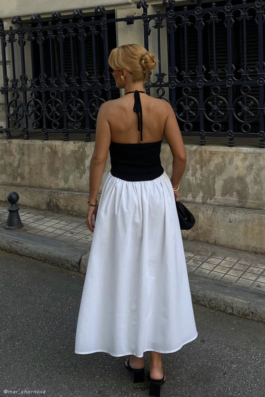 ROF Elyssa İşlemeli Kontrast Midi Elbise - Siyah/Beyaz