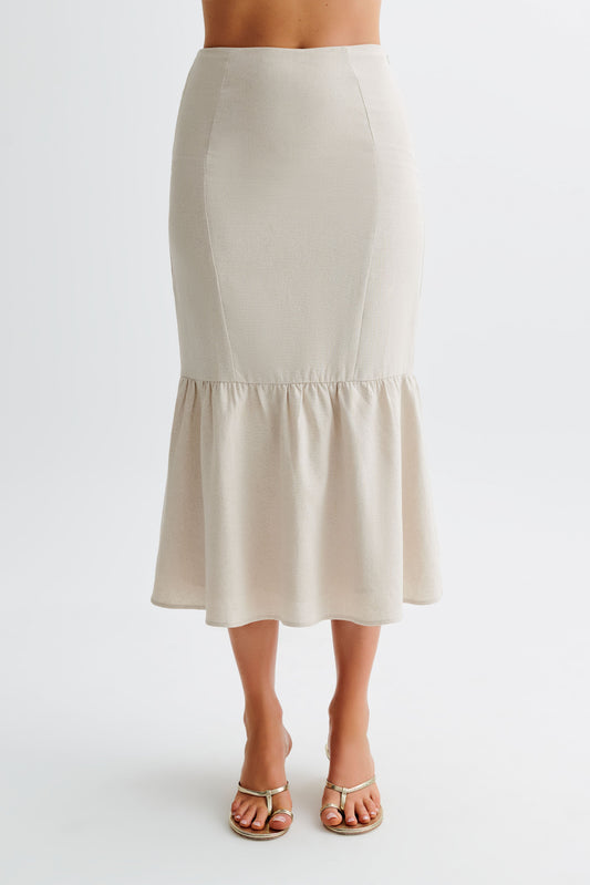 23% İndirimROF Venezia Fırfırlı Keten Midi Etek - Naturel