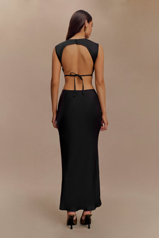 ROF Yvette Slip Uzun Elbise Asimetrik Etek - Siyah