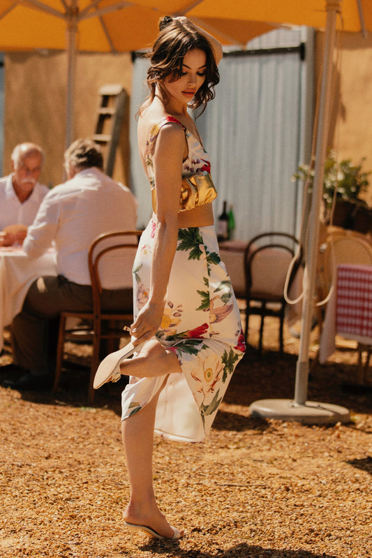 ROF Yvette Slip Uzun Elbise Asimetrik Etek - Tereyağı
