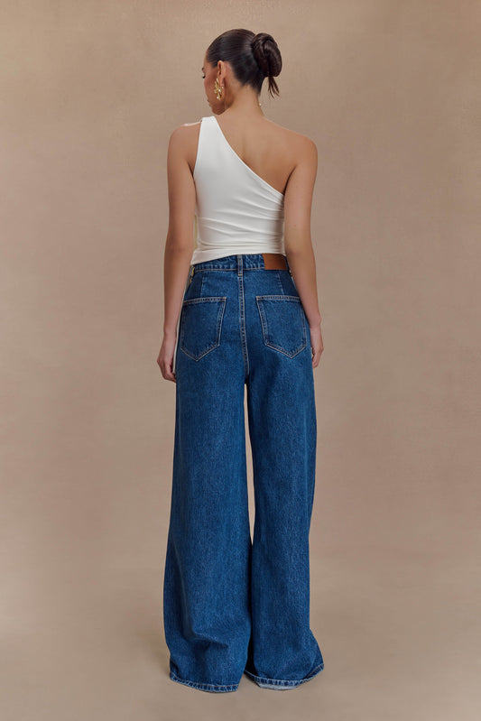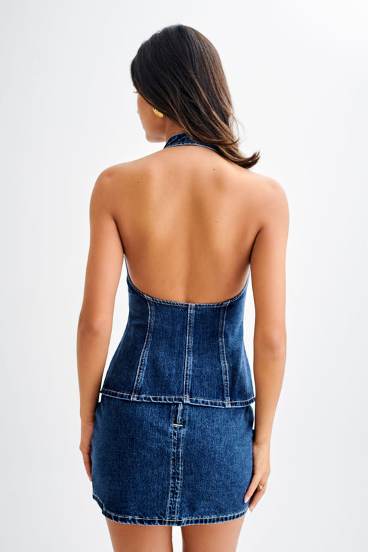 ROF Lennox Straplez Uzun Çizgi Düğmeli Üst - İndigo Mavi