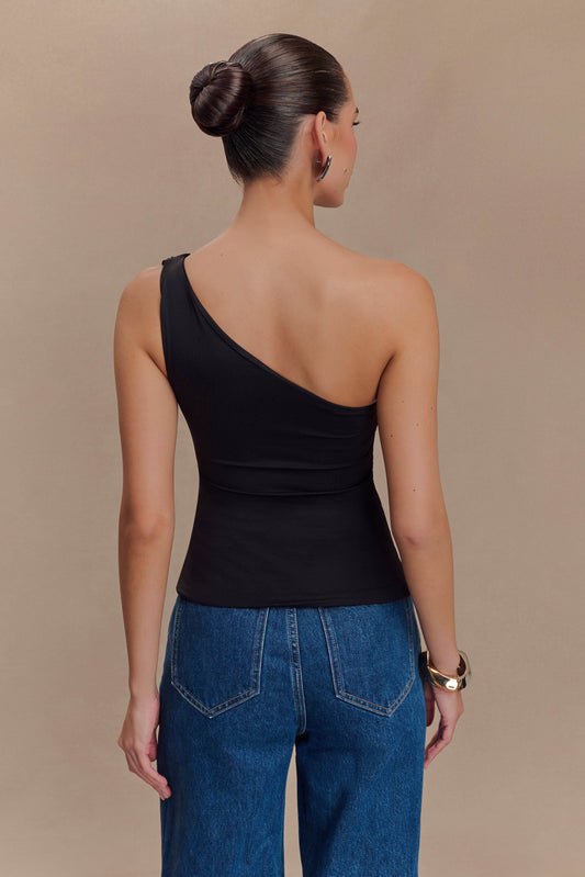 ROF Solene Tek Omuzlu Geri Dönüşümlü Naylon Bükümlü Üst - Siyah