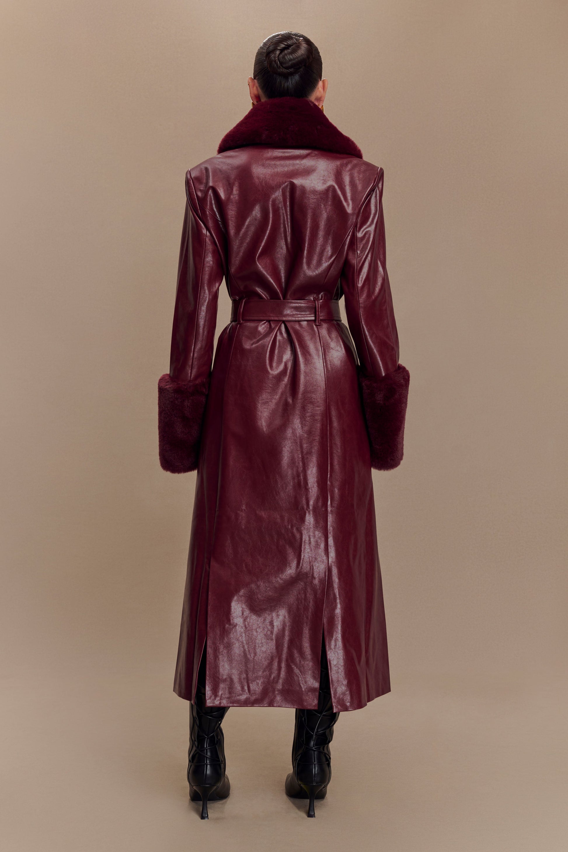 ROF Bec Suni Kürklü Suni Deri Trençkot - Kiraz Kırmızı