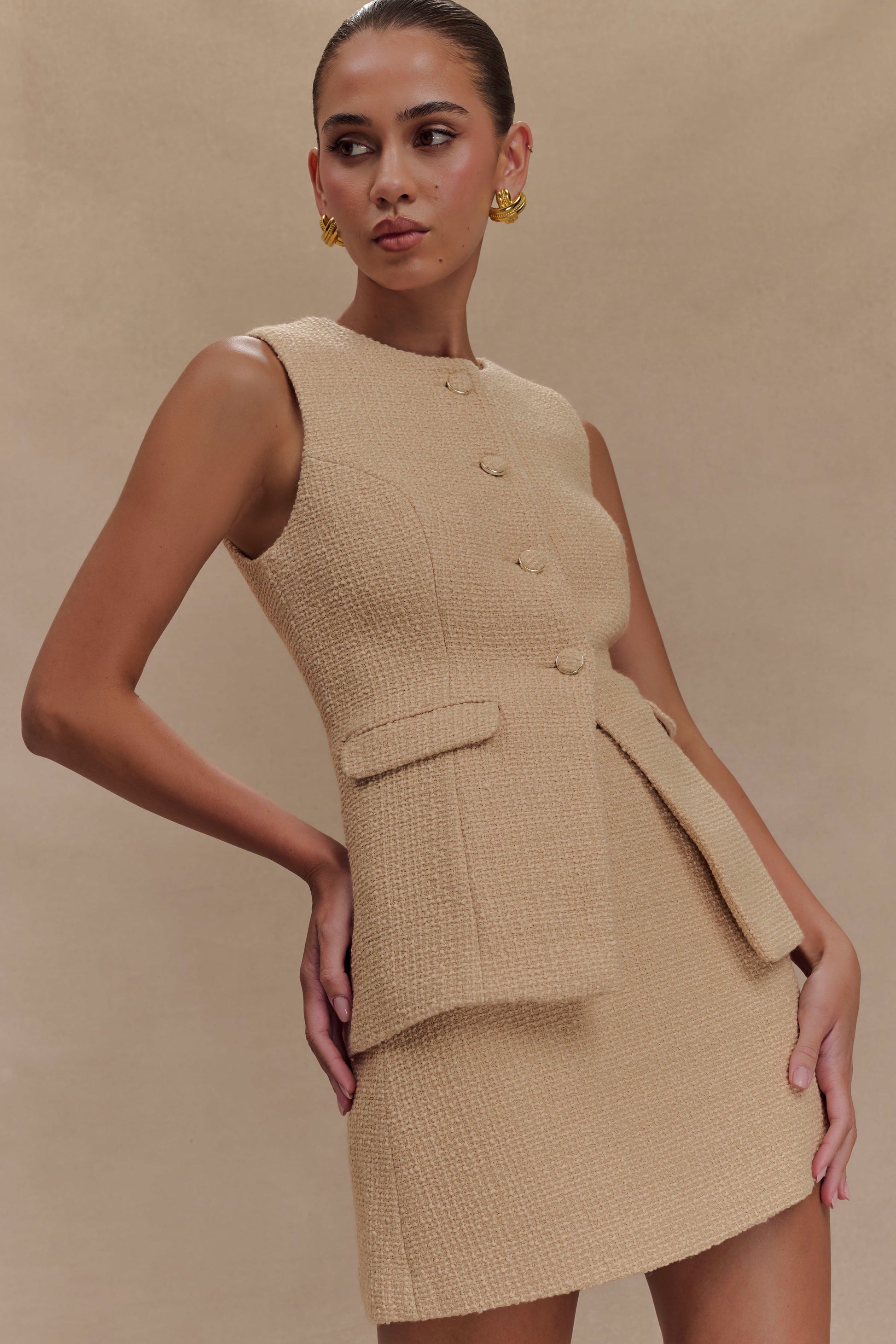 ROF Camilla Buklet Kolsuz Yelek - Açık Taupe