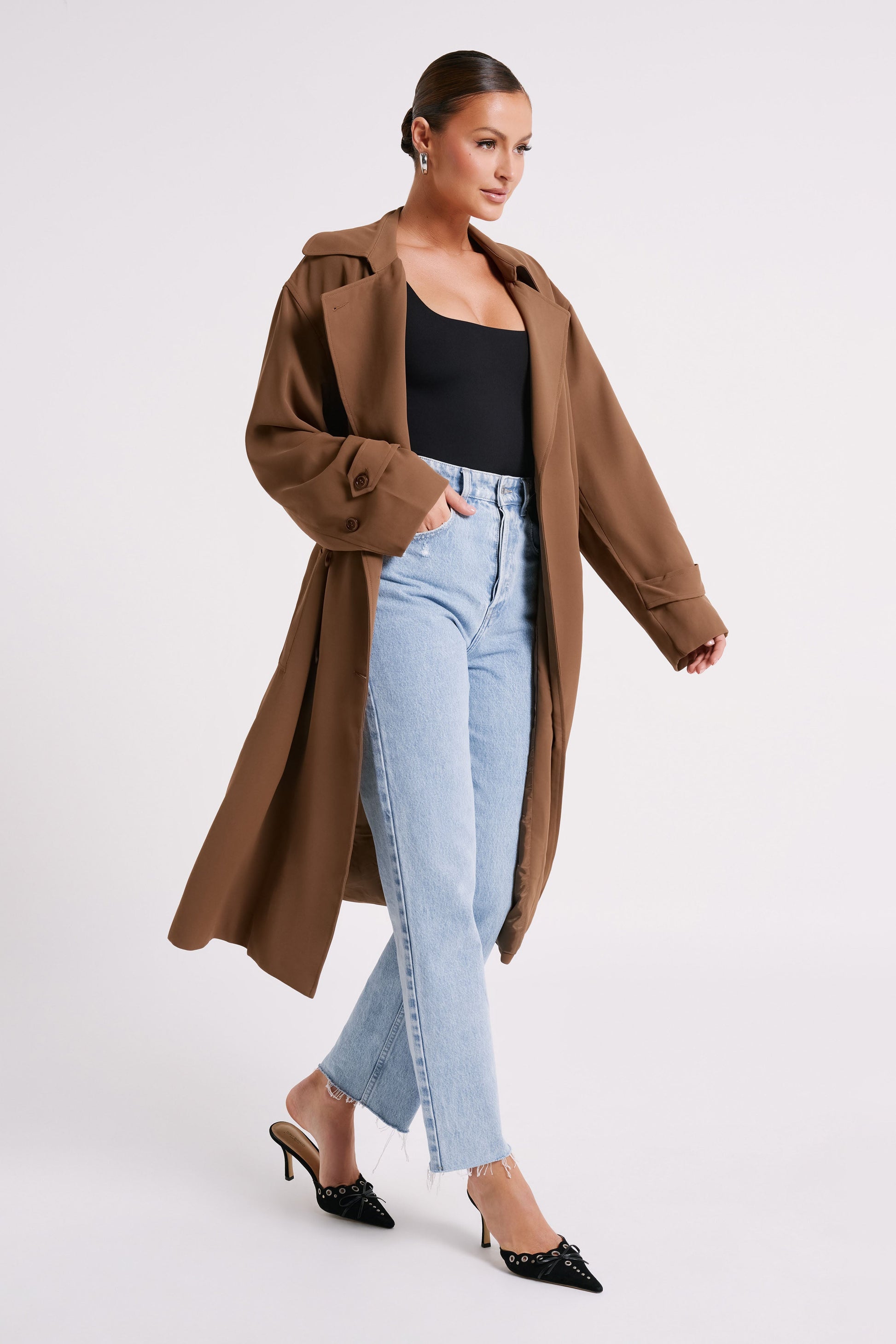 ROF Dalia Düşük Omuzlu Saten Maxi Elbise - Bitter Çikolata