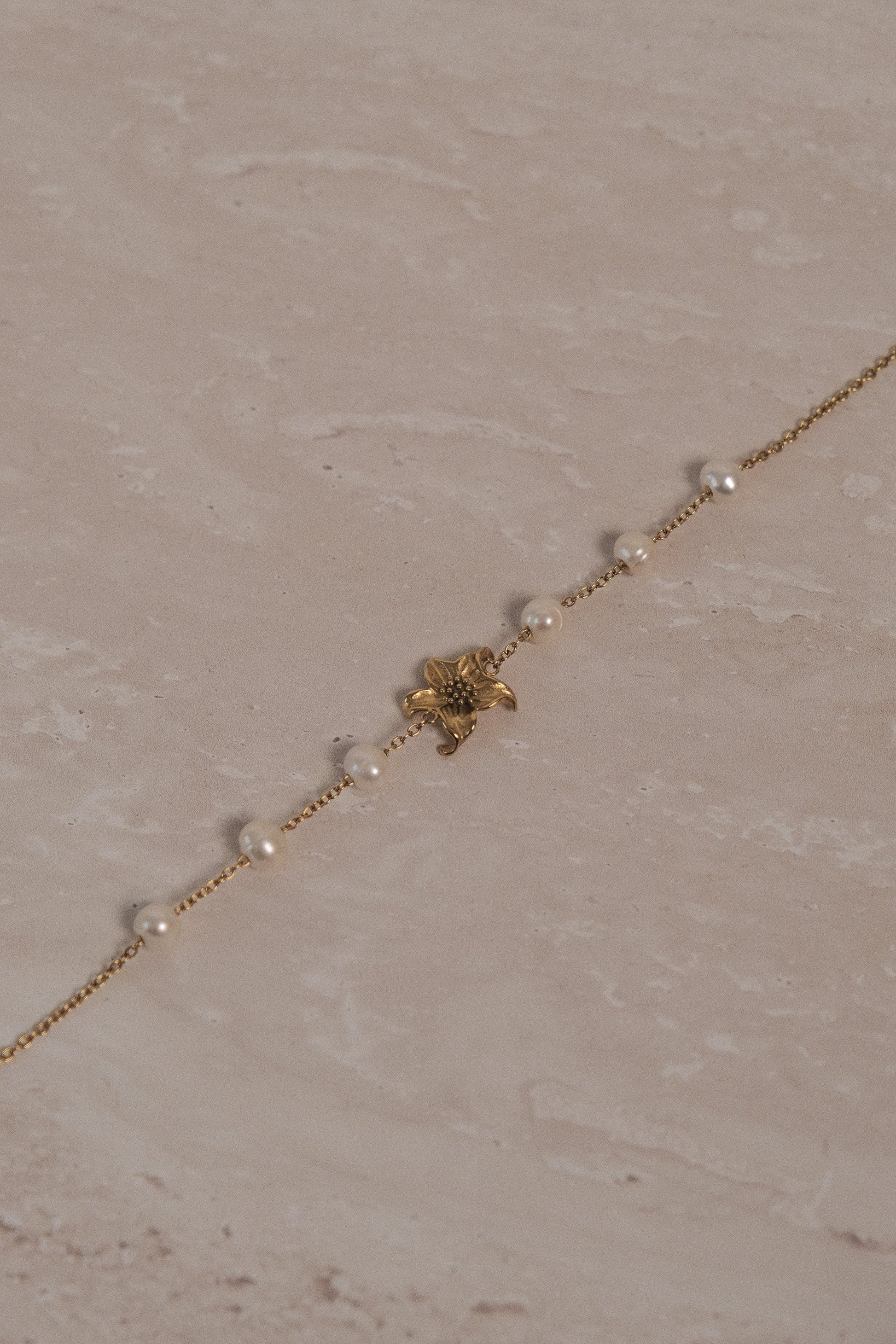 ROF Eva Çiçek Tatlı Su İnci Kolye - Altın