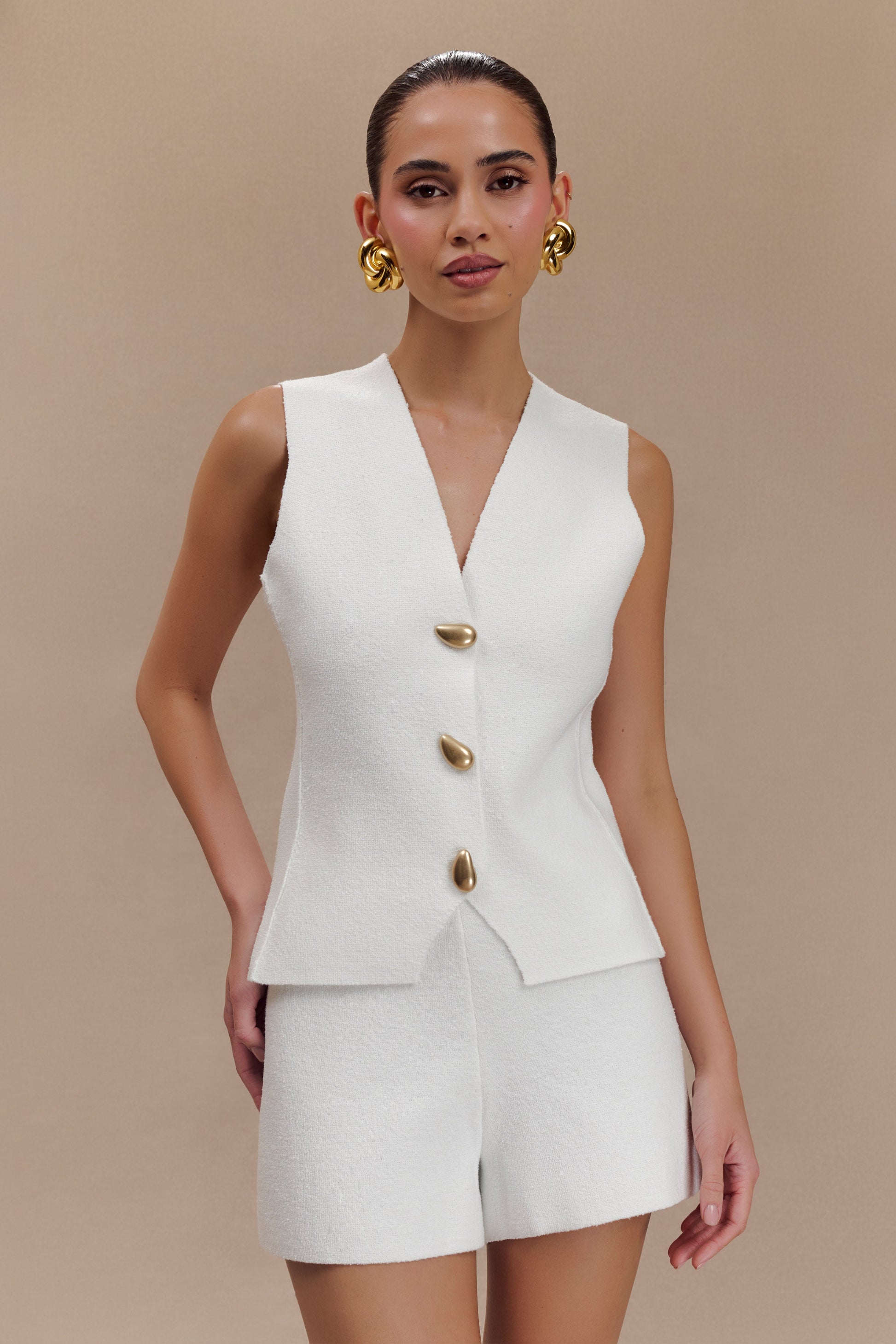 ROF Astrid Asimetrik Kolsuz Takım Elbise Set - Beyaz