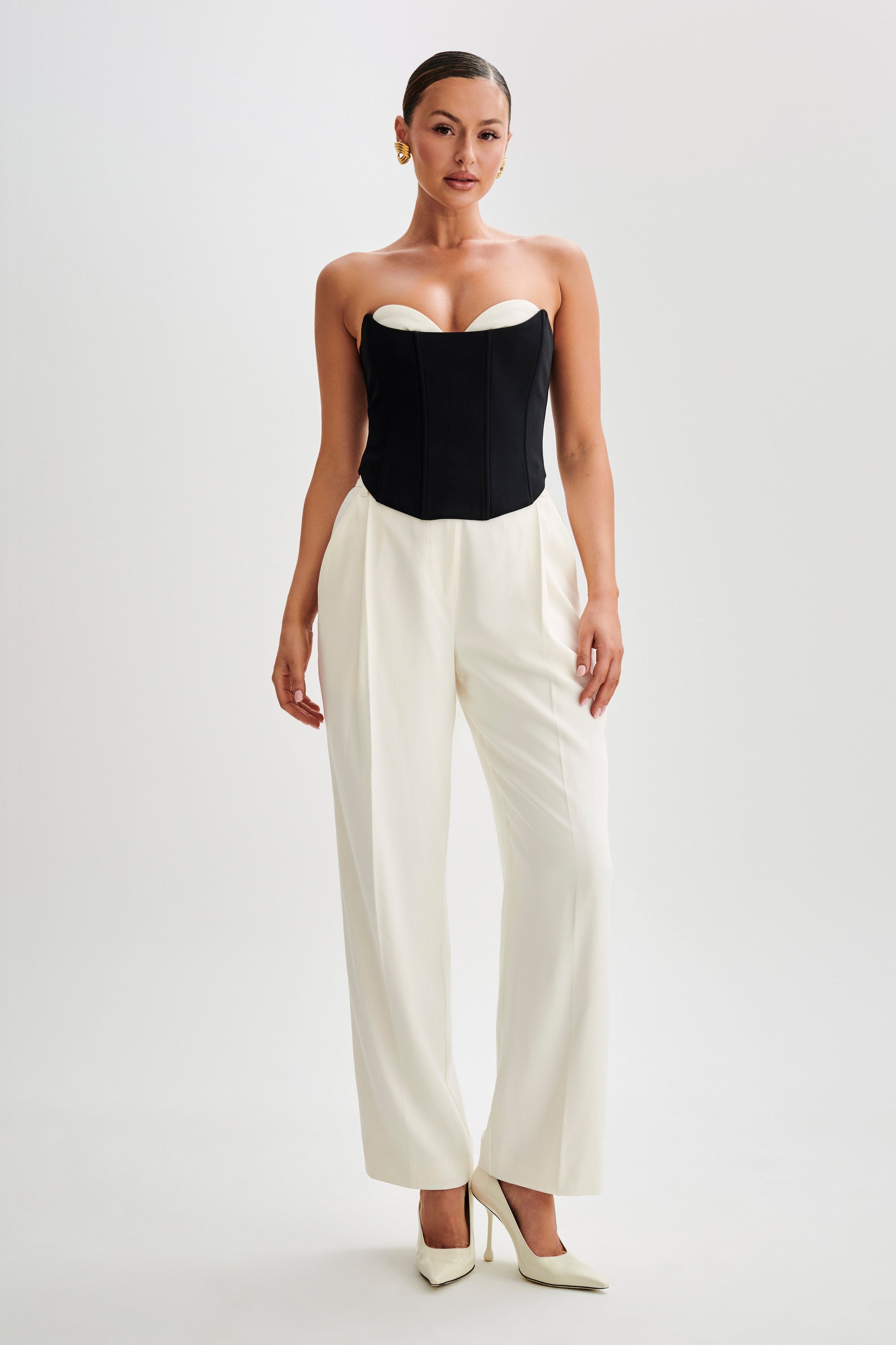ROF Astrid Asimetrik Kolsuz Takım Elbise Set - Beyaz